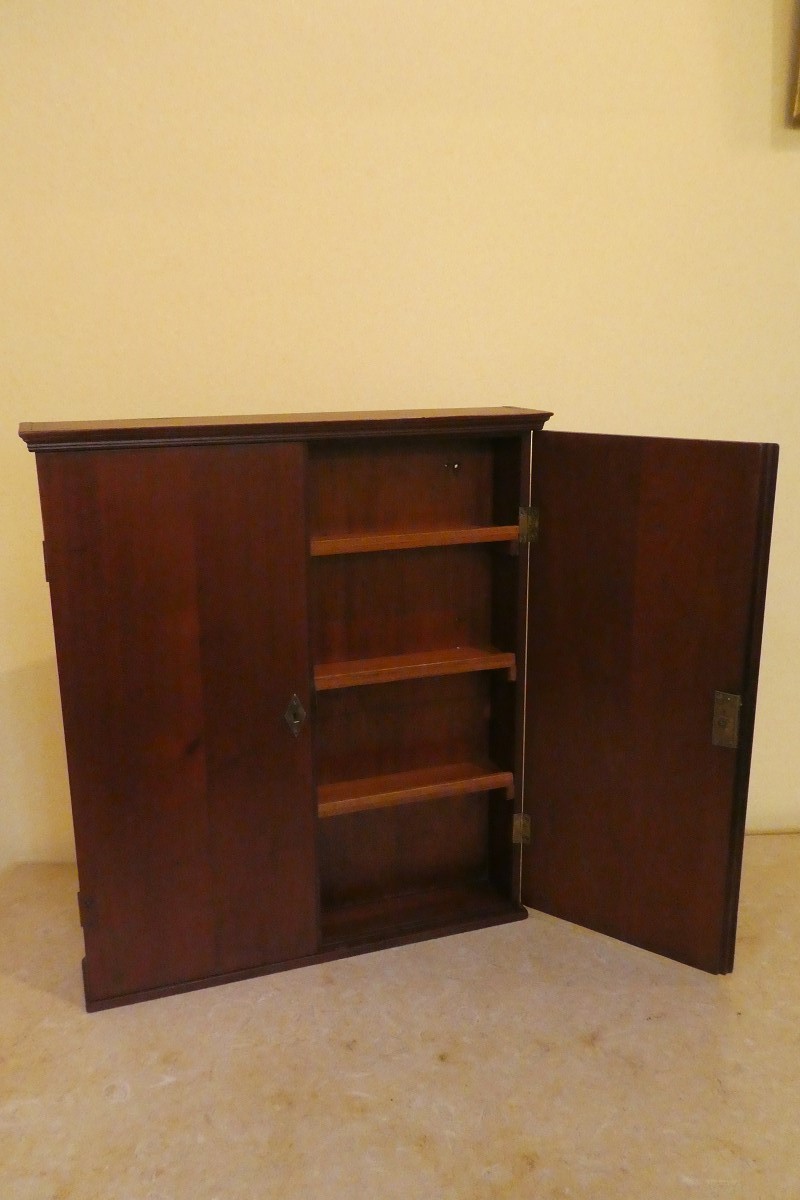 Petite armoire en acajou PETITE ARMOIRE EN ACAJOU Elle est équipée de trois rayons à l'intérieur. Vers 1850. L: 48 cm P: 9 cm H: 55 cm