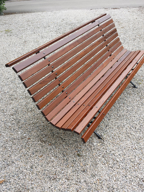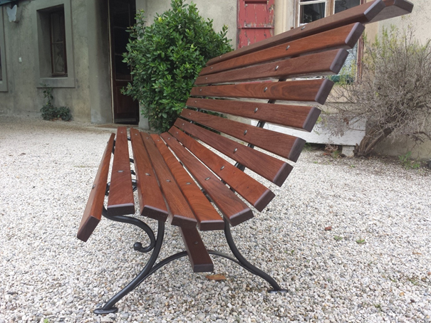 Banc de jardin Banc de jardin En fonte zinguée et thermo laquée, lattes en bois de fer huilé.Vers 1920. L : 180 cm P : 70 cm H : 88 cm